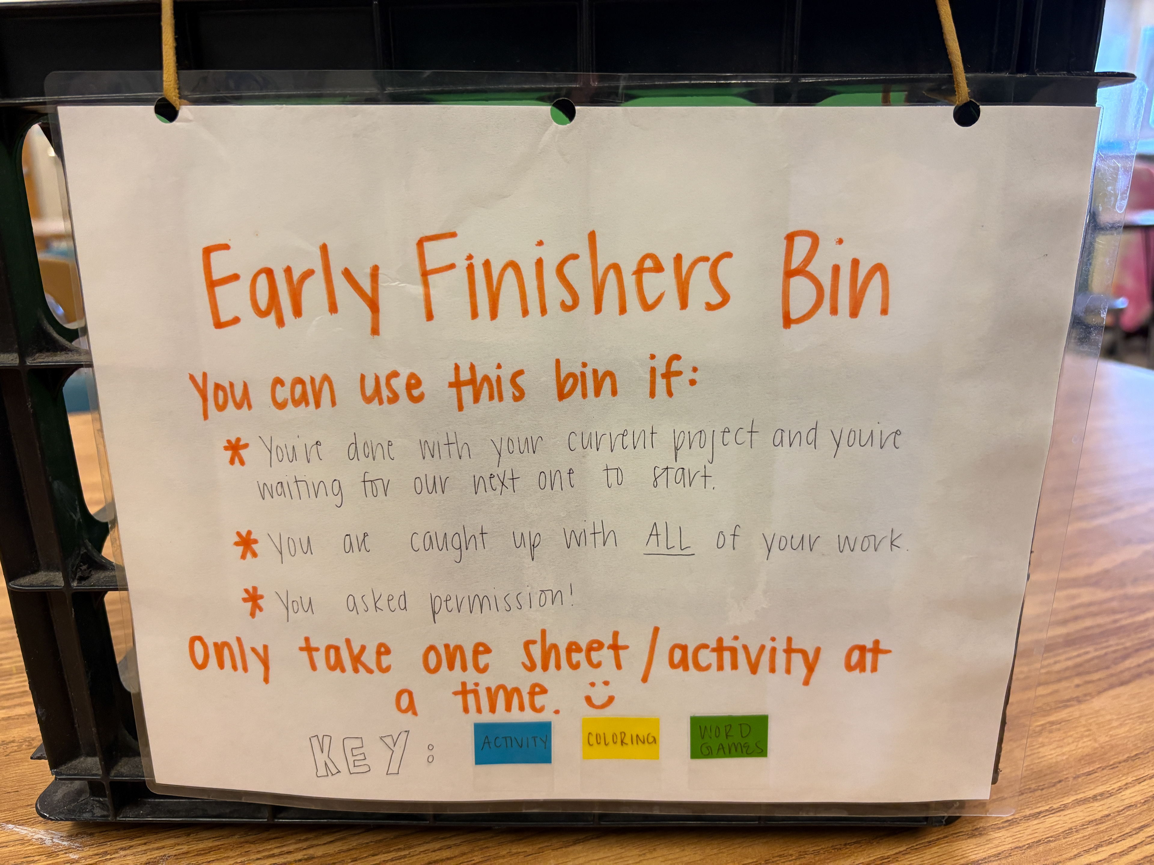 Early Finishers Bin