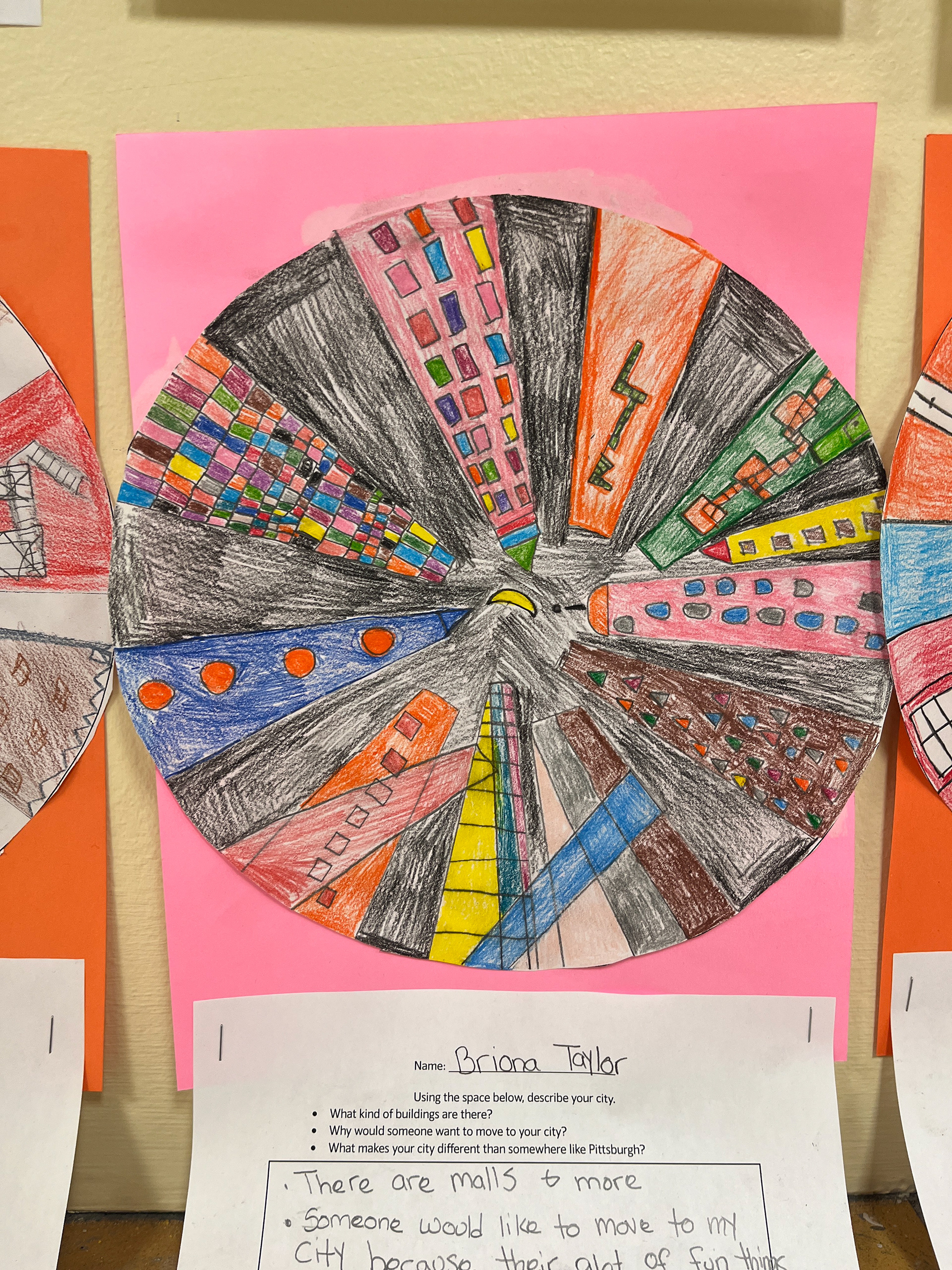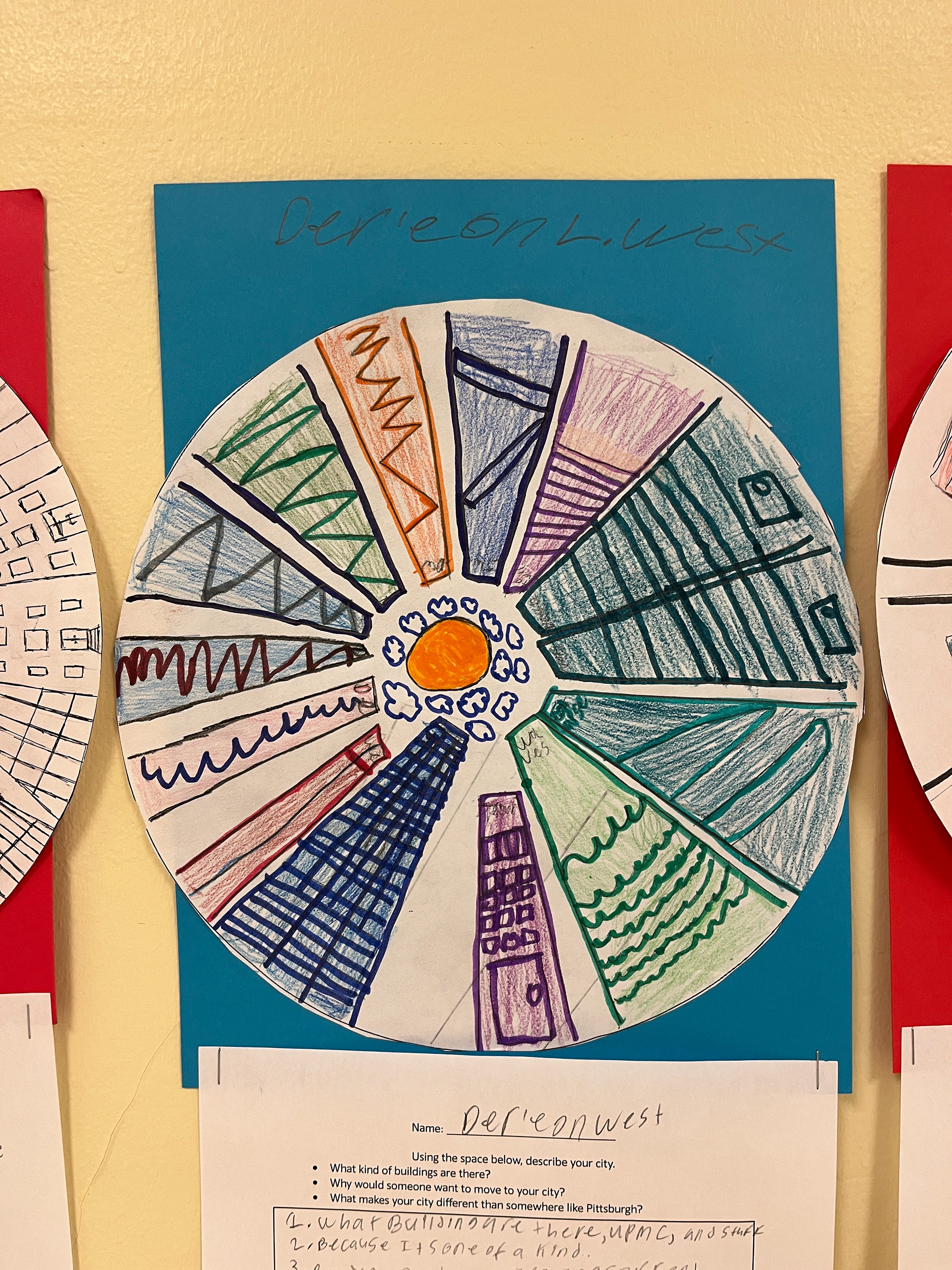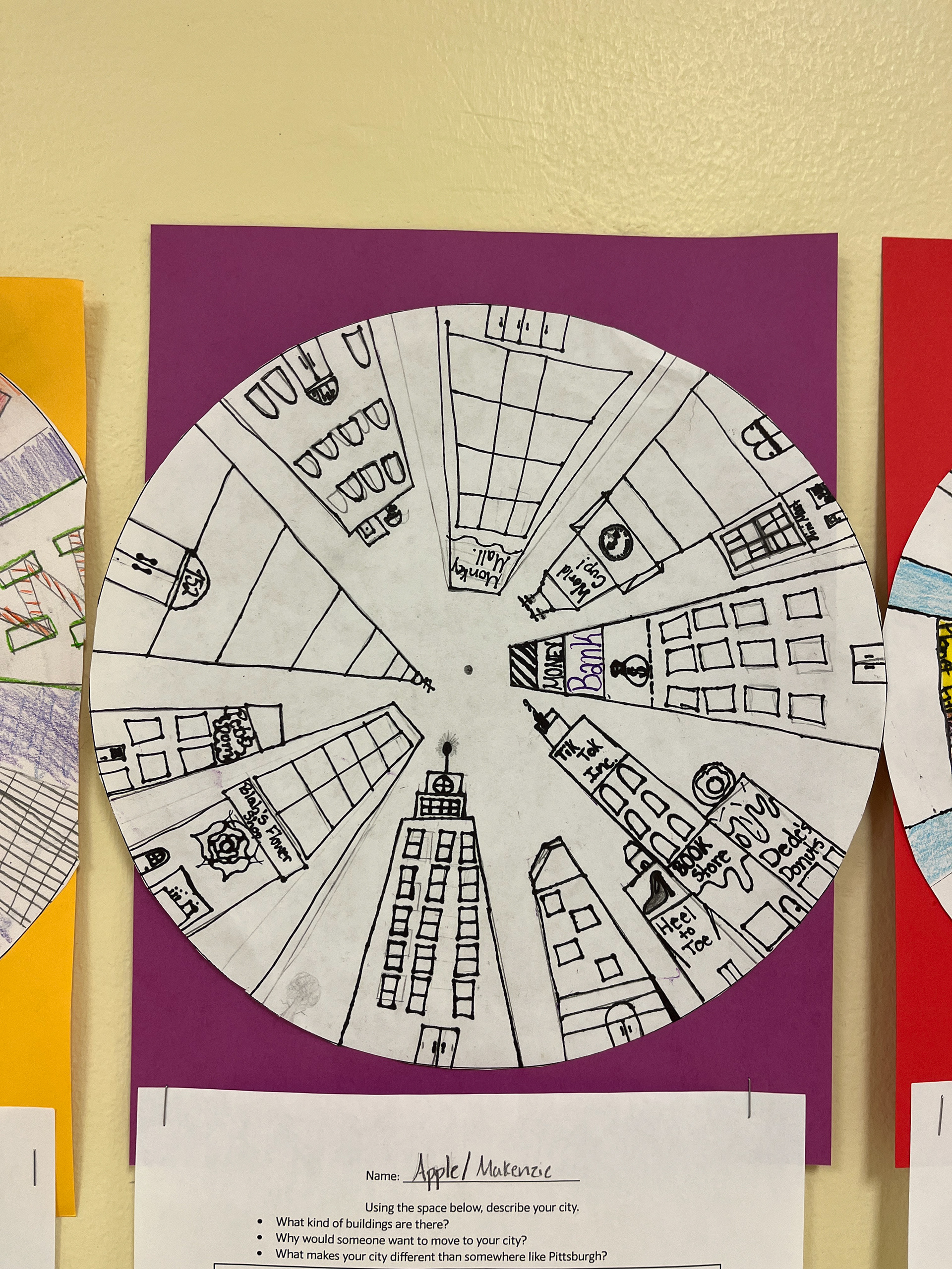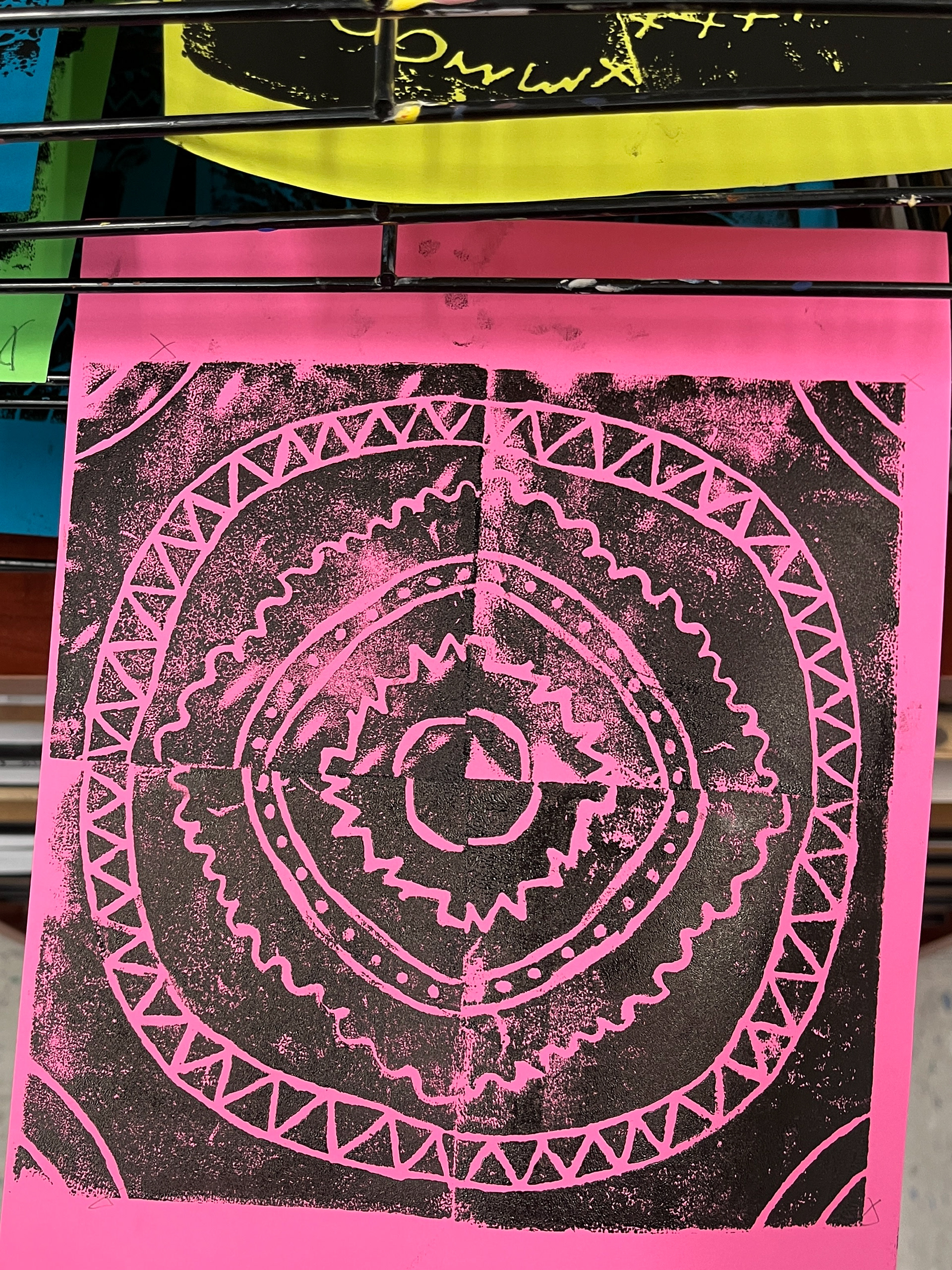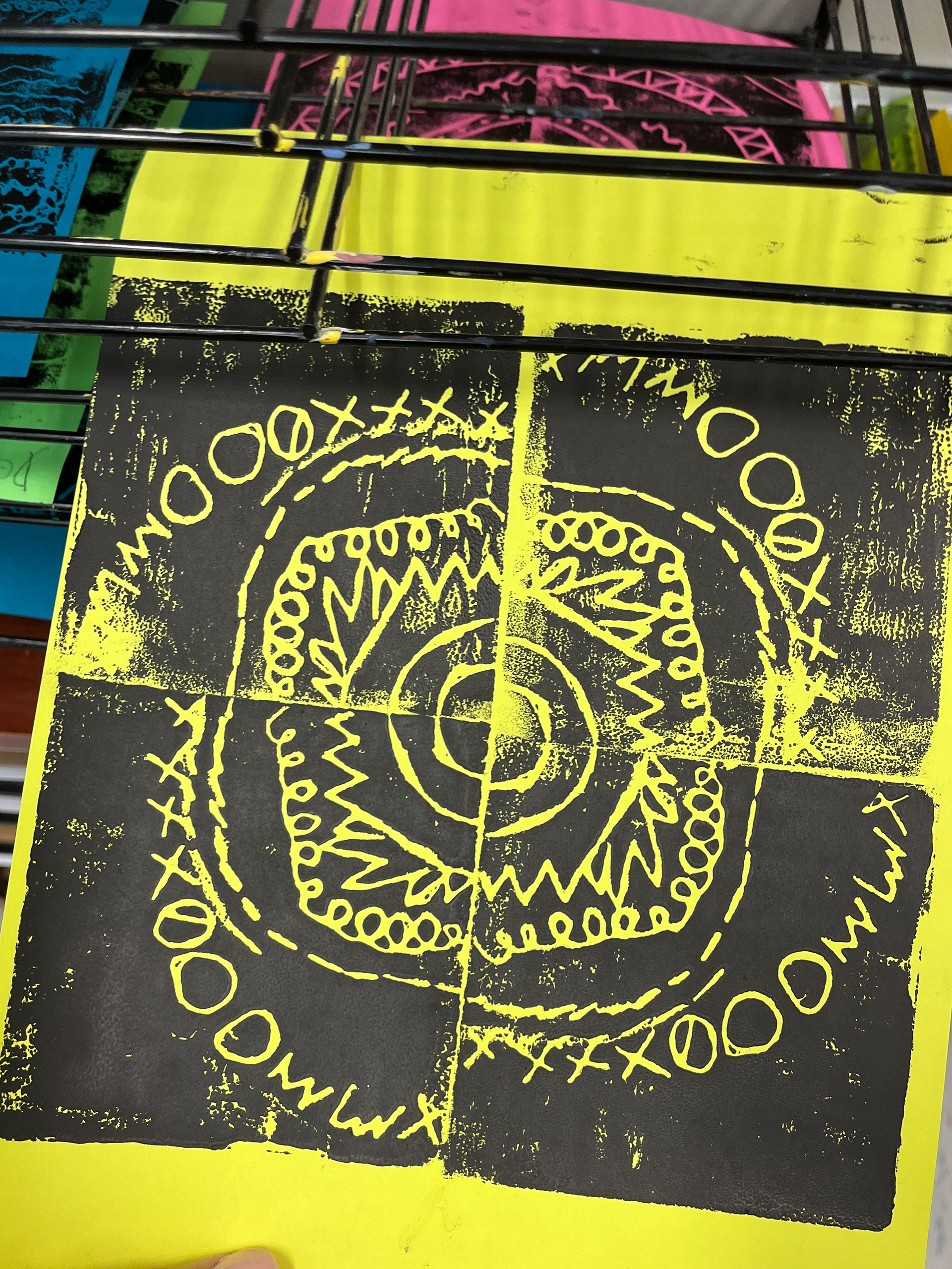 Yarn Art inspired by Huichol Artwork, created by 7th Grade